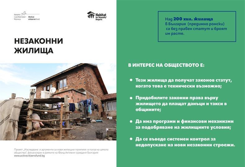 Кампанията е част от проекта „Изследване и аргументи за нови жилищни политики в полза на цялото общество“, чиято цел е да допринесе за разработване на дългосрочни, отговарящи на нуждите общински и национални жилищни политики, които да осигурят адекватни и сигурни жилища и среда за обитаване на ромите. Научете повече тук: https://hfh.bg/bg/research-based-policy-development/